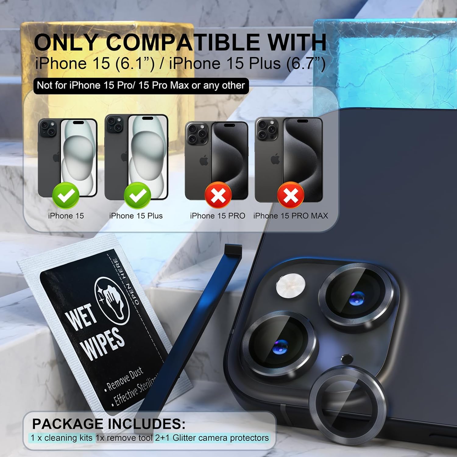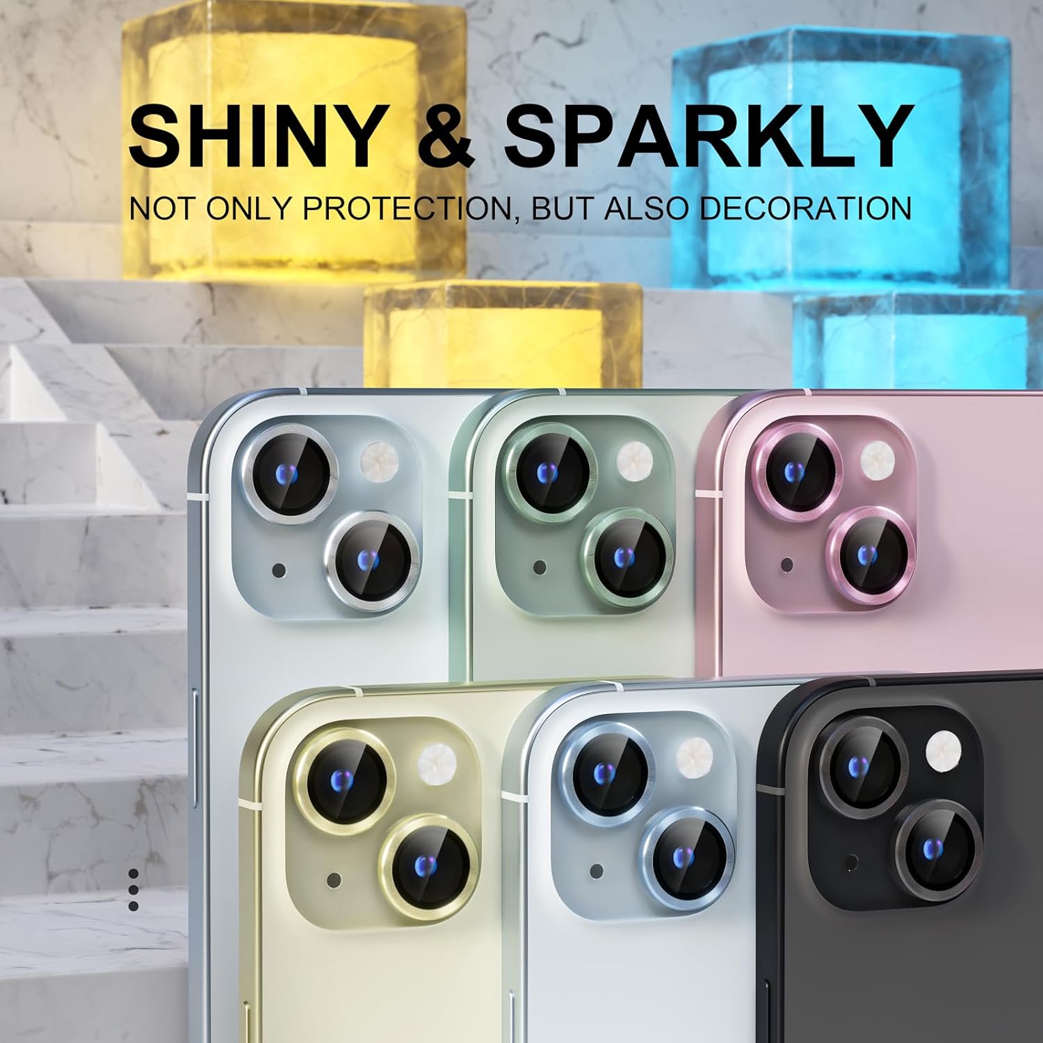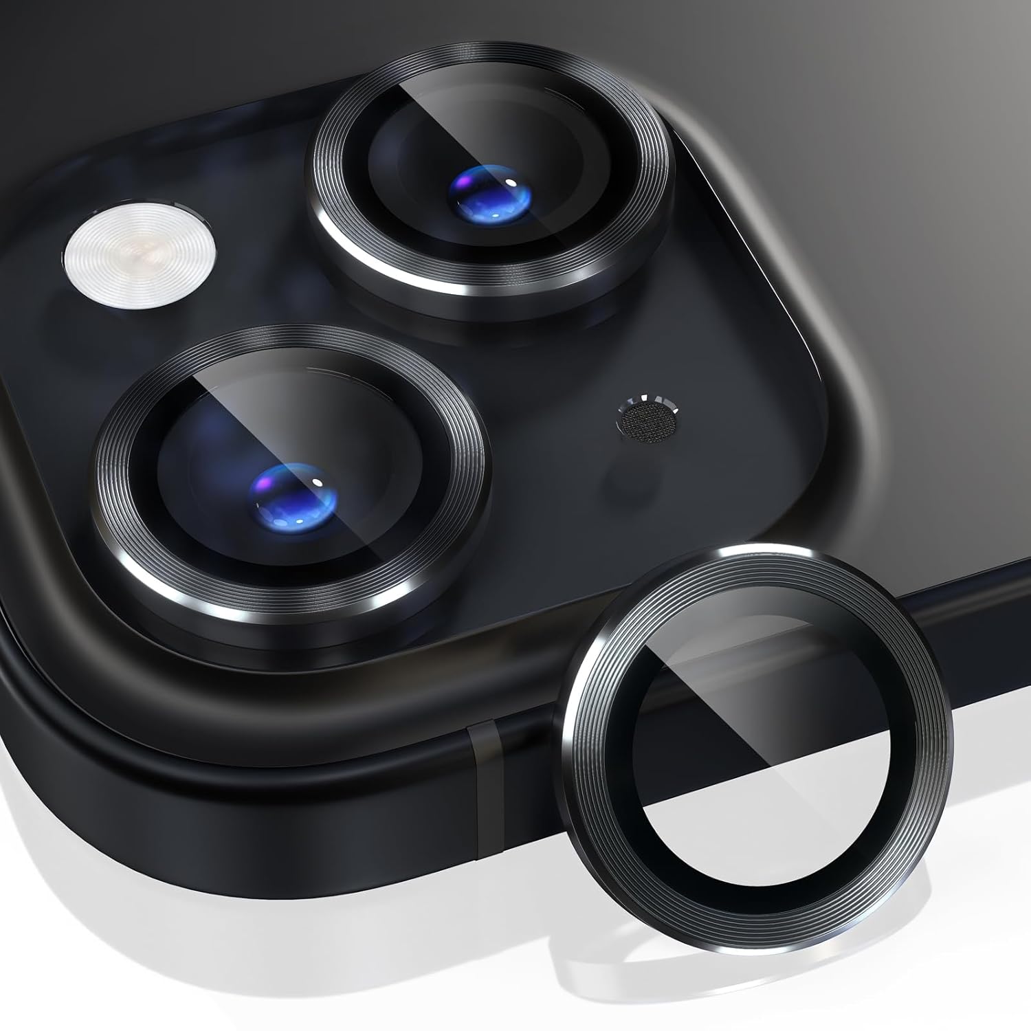 Keep your iPhone 15 / iPhone 15 Plus camera safe from scratches, cracks, and dust with this high-quality camera lens protector. Designed with precision to fit perfectly, this accessory ensures your device's camera remains in pristine condition while adding a touch of sophistication with its sleek black metal ring decoration.