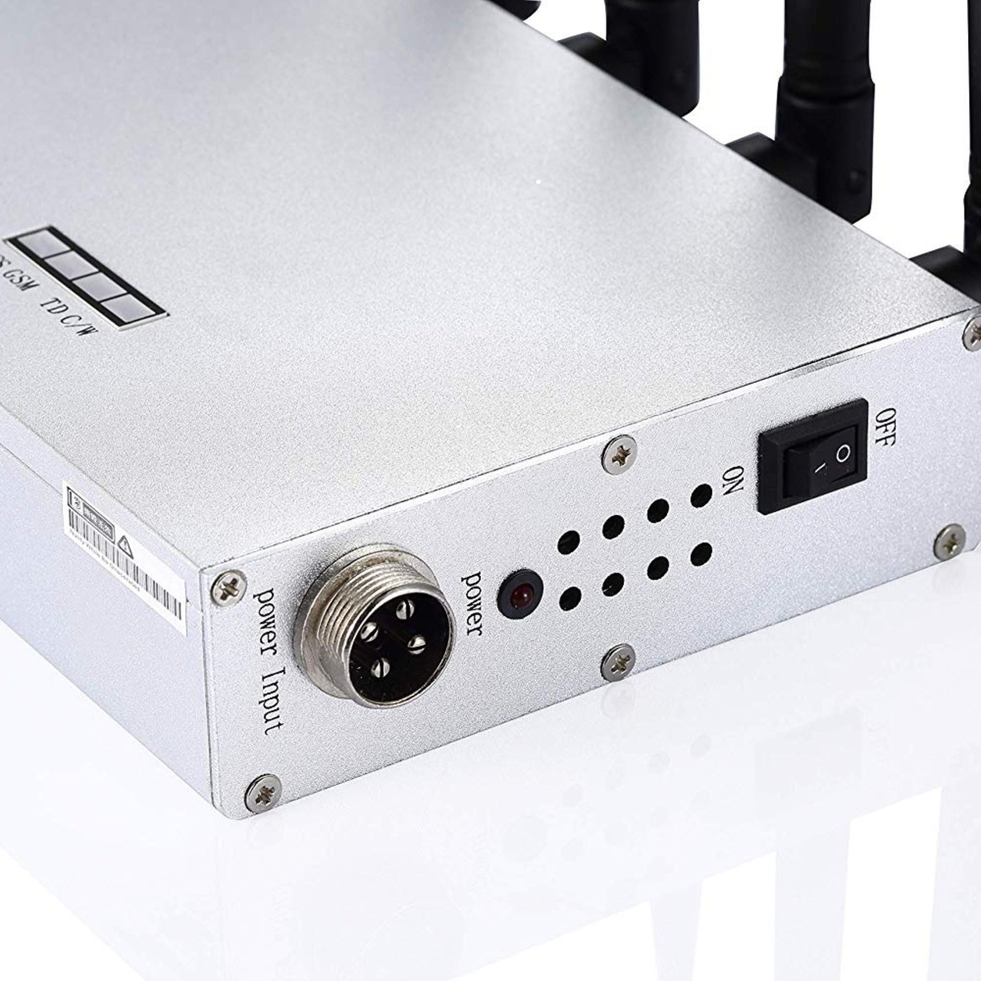 Six-antenna signal jammer in action, highlighting its ability to block 2G, 3G, 4G, and Wi-Fi