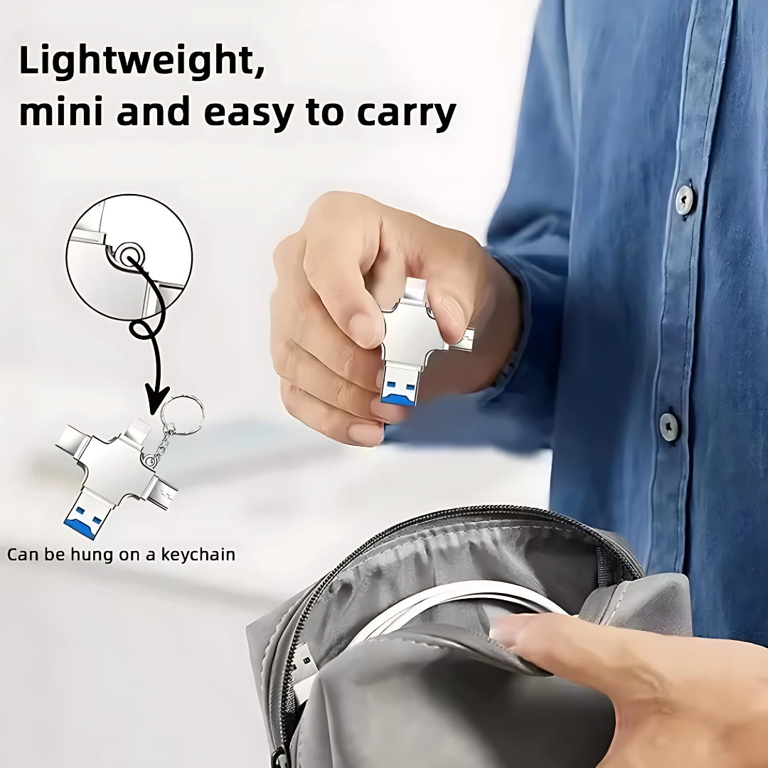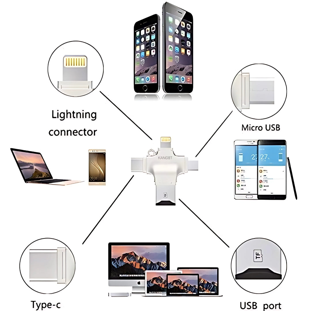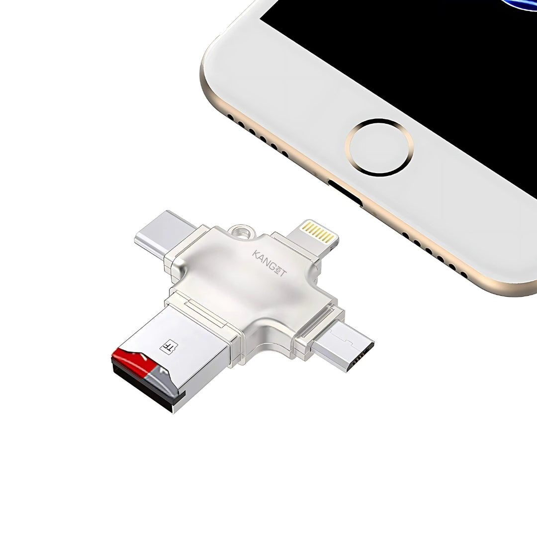 The 4-in-1 Card Reader is more than just a card reader; it’s an all-in-one data management tool designed to cater to modern connectivity needs. Whether you’re transferring high-resolution images from a DSLR, managing files on your smartphone, or expanding your device's storage, the 4-in-1 ensures efficiency, reliability, and speed.