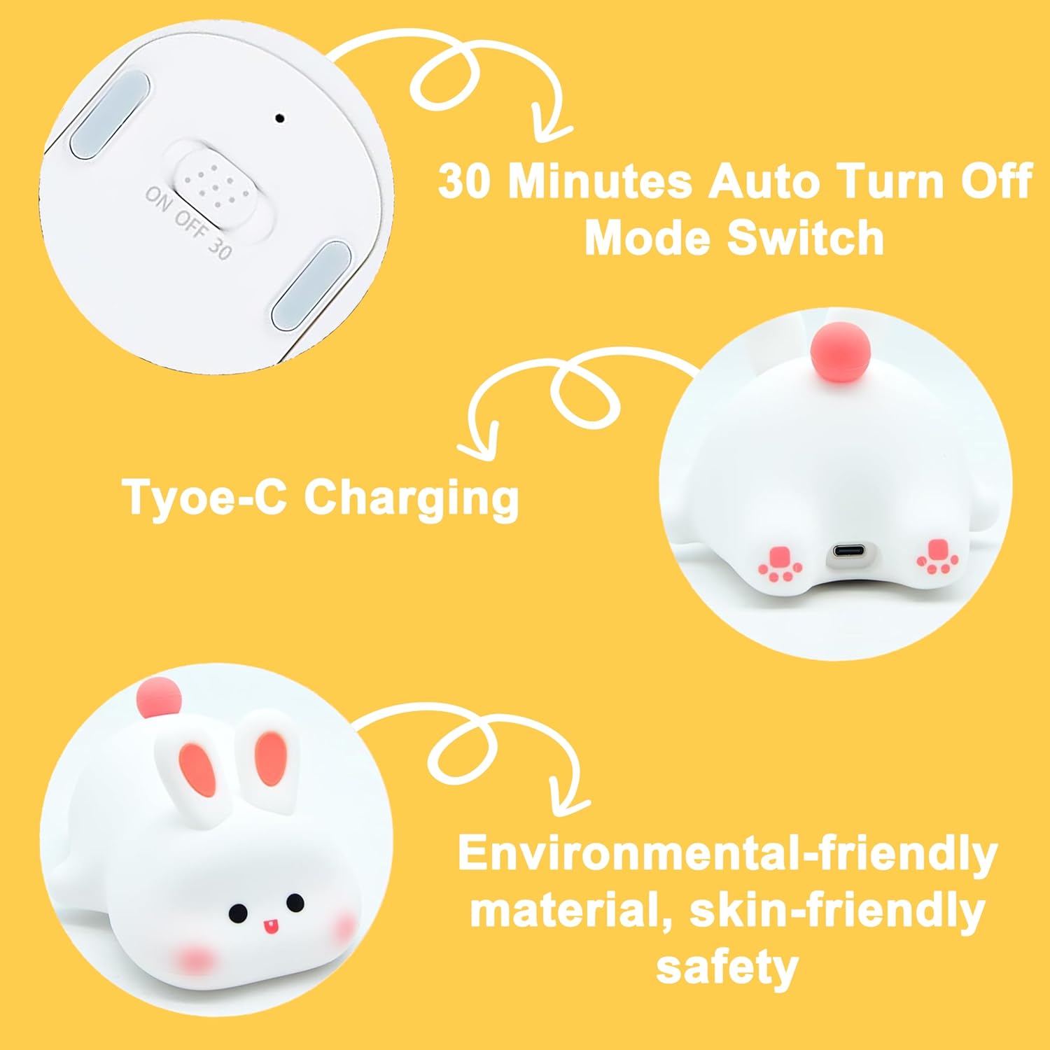Kids Cute Little Rabbit Night Light Touch Silicone Animal Night Lamp | Rechargeable LED Bedside Lamp for Children's Bedroom | Ideal Gift for Boys, Girls, Toddlers, and Nursery