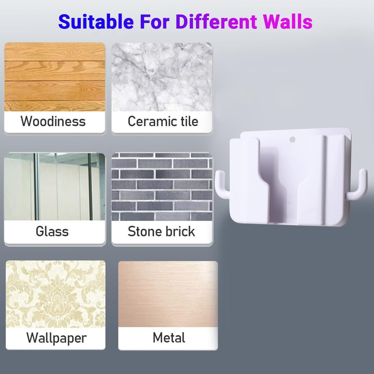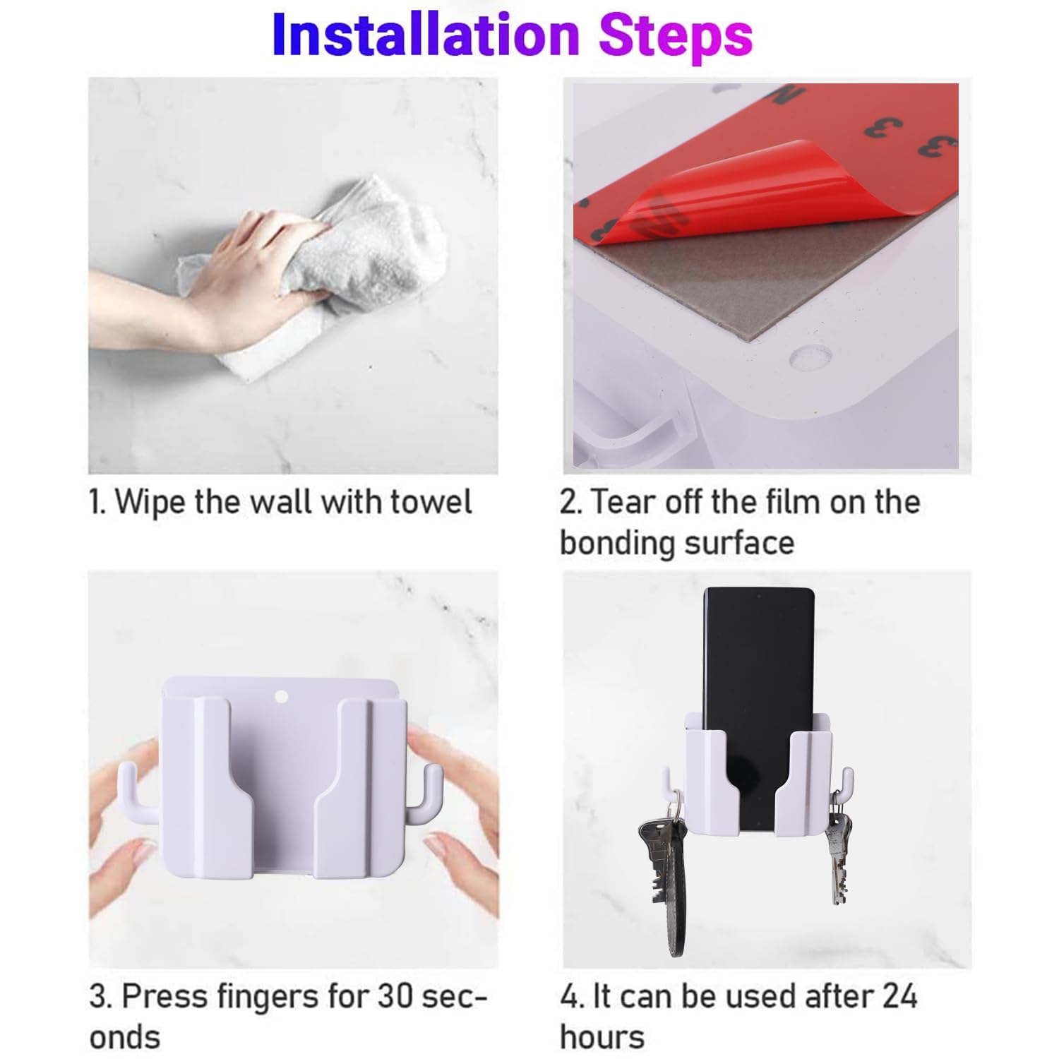 Wall Mounted Mobile Charging Stand with Hooks | Universal Phone Holder & Remote Organizer | Space-Saving Wall Storage
