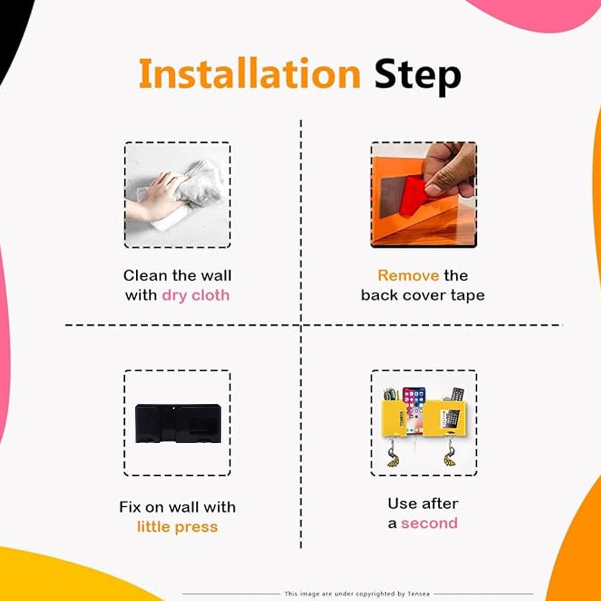 Wall Mounted Multi-Purpose Organizer | Mobile Charging Stand, Remote Holder, Pen Stand & Key Hanger | Space-Saving Storage Box