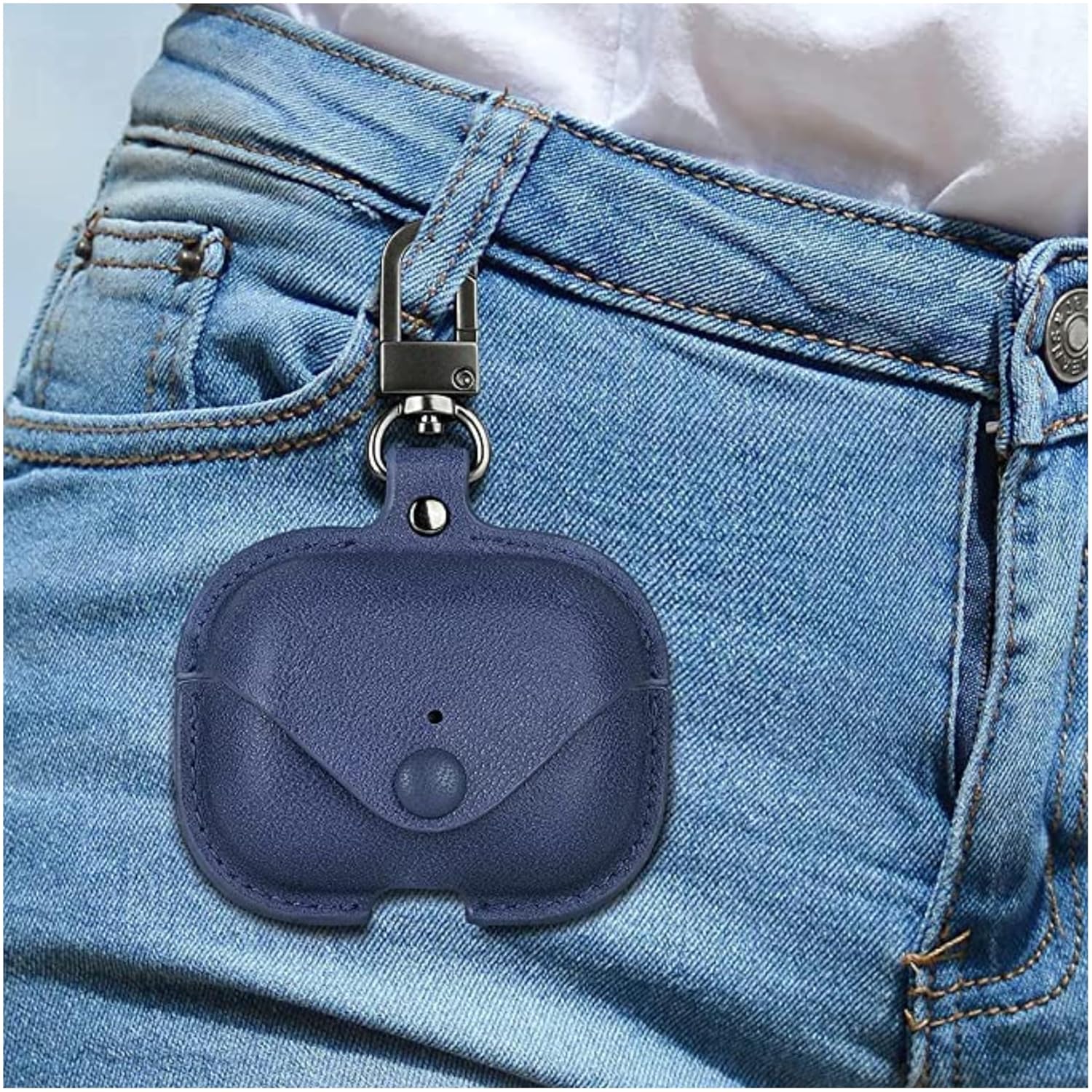 AirPods Pro/Pro2 Camouflage Leather Case Cover with Shockproof Protection & Loss Prevention Clip (Army Blue)