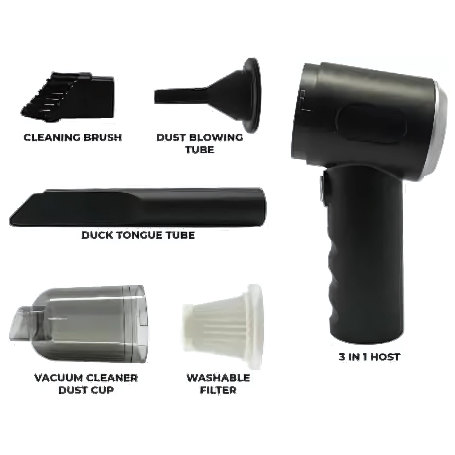 3 in 1 Portable Car Vacuum Cleaner with Blower | USB Rechargeable Wireless Handheld Vacuum for Travel, Camping, and Home | Reusable, Compact, and Powerful!