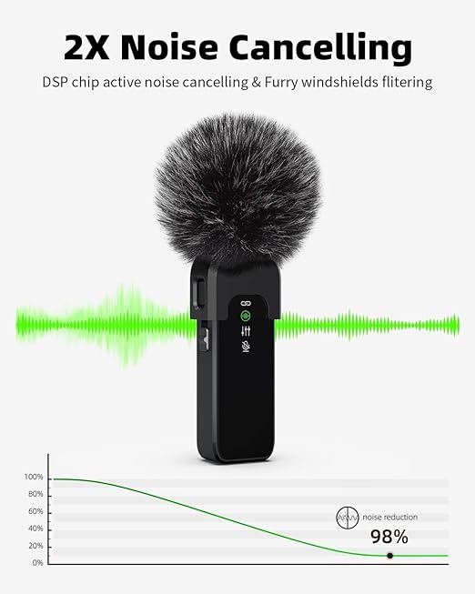 - Crystal Clear Sound Quality Our Kanget omnidirectional dual wireless lavalier microphone is equipped with professional-grade intelligent noise reduction chips, providing effective identification of the original sound and clear recording in noisy environments. The sponge windscreen reduces wind noise and plosives, while the AI algorithm intelligent noise reduction module accurately filters all kinds of noise and has strong anti-interference ability.
