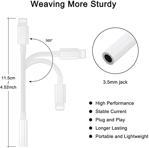 Lightning to 3.5 mm Audio Jack Connector Cable for iOS 13 and Later, Audio AUX Converter Cable iOS to 3.5mm Headphone Jack Adapter (White)