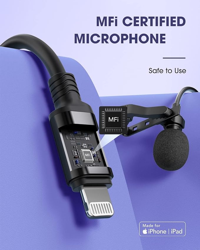 - Vlogging Anytime Anywhere This hands-free condenser clip-on microphone for iPhone is equipped with the PCB built-in RF low noise chip, anti-interference shield cable, and high-quality wind proof fur shield to ensure that the sound is clear and without noise, which helps you to make a successful vlogging anytime and anywhere. You can use it even when you are outdoor to create perfect video or audio recording.