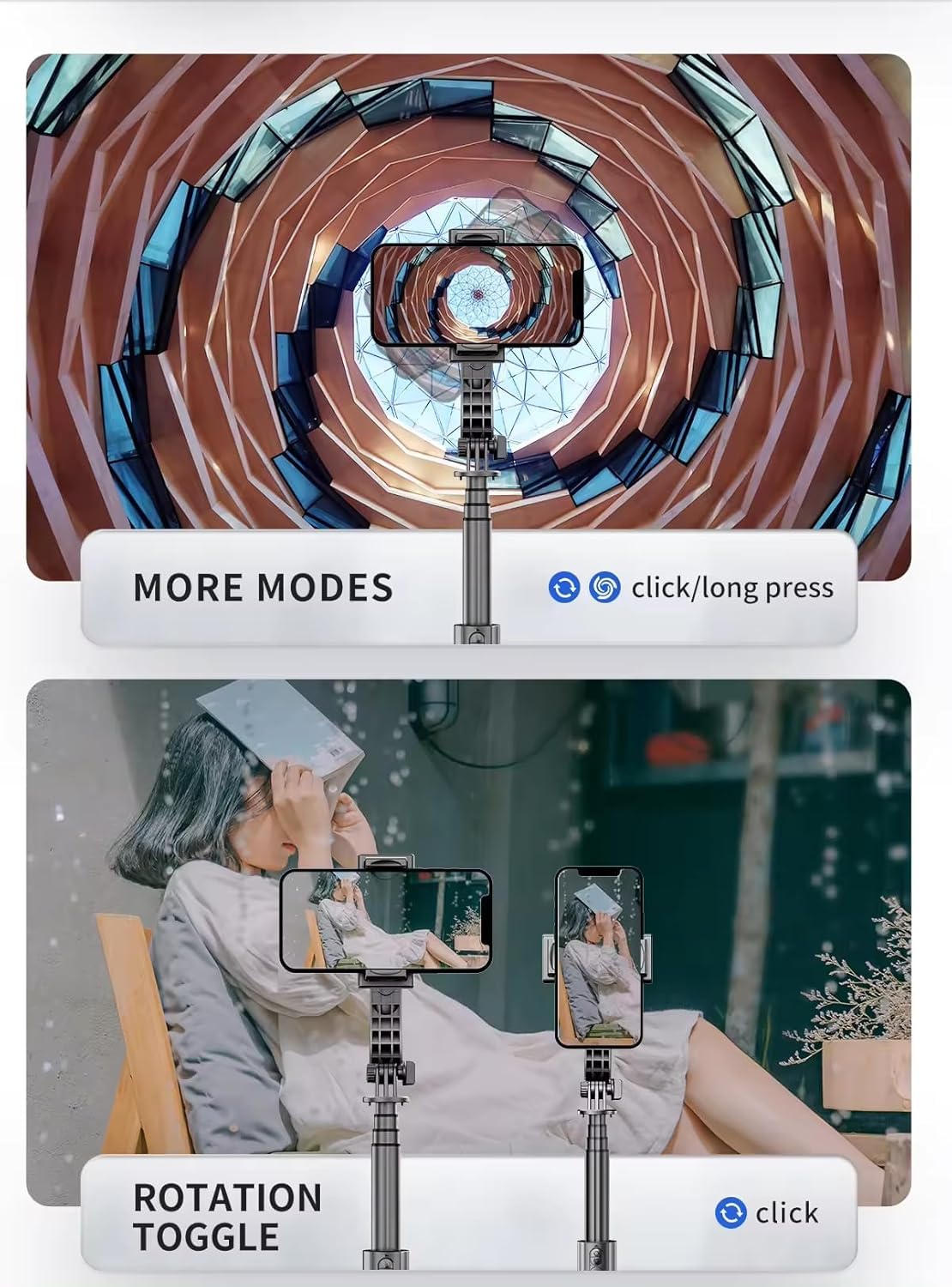 ✅ 2-in-1 Gimbal + Selfie Stick: