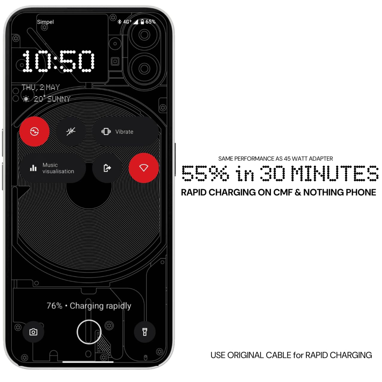 Upgrade your charging experience today! Whether you're at home, in the office, or on the go, the Nothing Original 33W Type-C CMF Charger Adapter is the ideal choice for powering your devices swiftly and safely.