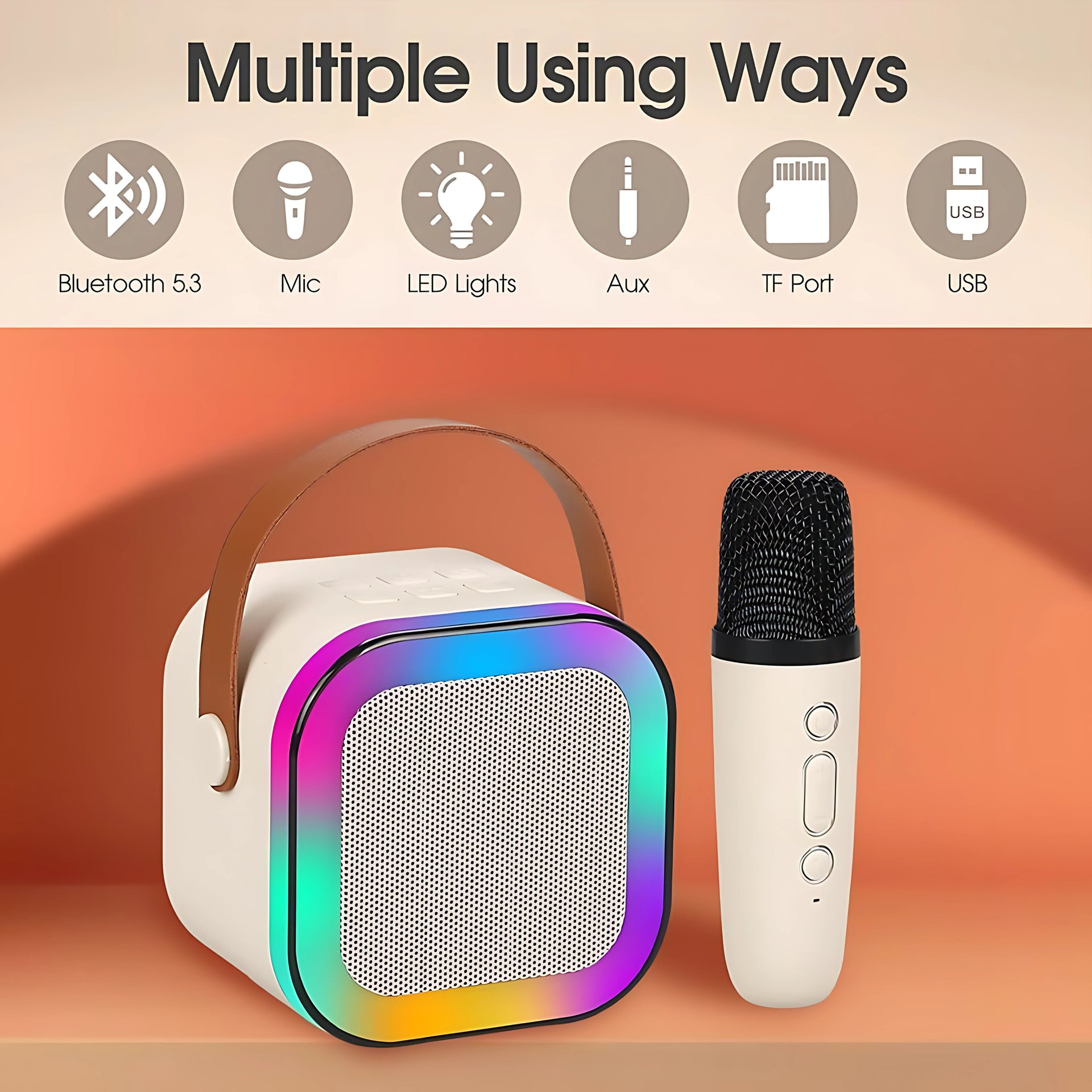 Portable Bluetooth Karaoke Machine for Kids & Adults | Mini Karaoke Speaker with Wireless Microphone & Dynamic Lights | Ideal Birthday Gift for Home KTV, Outdoor, Travel | Multicolor Fun!