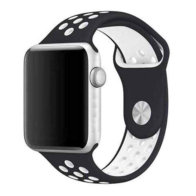 The stylish combination of black and white adds a sporty yet elegant look to your Apple Watch, making it versatile for any occasion.