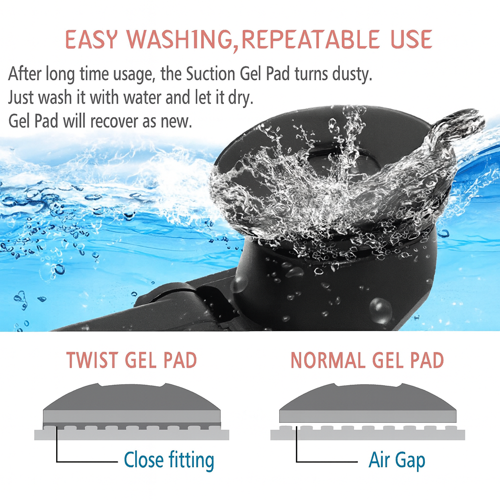 - Washable Suction Gel Pad – Simply rinse with water to refresh stickiness and reuse multiple times.