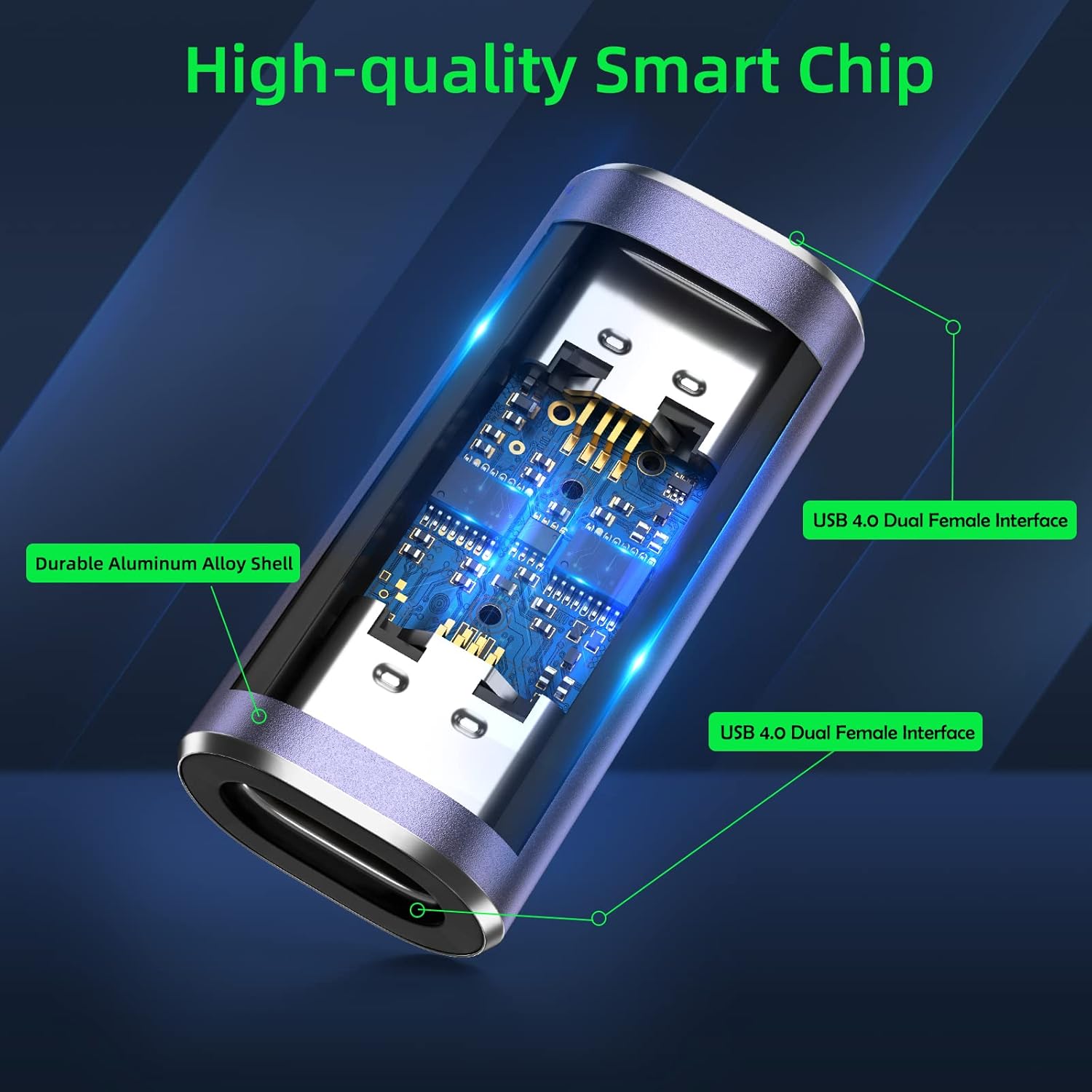 USB C Female to Female Adapter, 100W USB C Coupler Extender, 40Gbps, PD 100W, 8K 60hz Video USB C Extension Support USB 4 Cable for Thunderbolt 4/3 For Laptop Tablet, Phone, Docking, MacBook,HUB